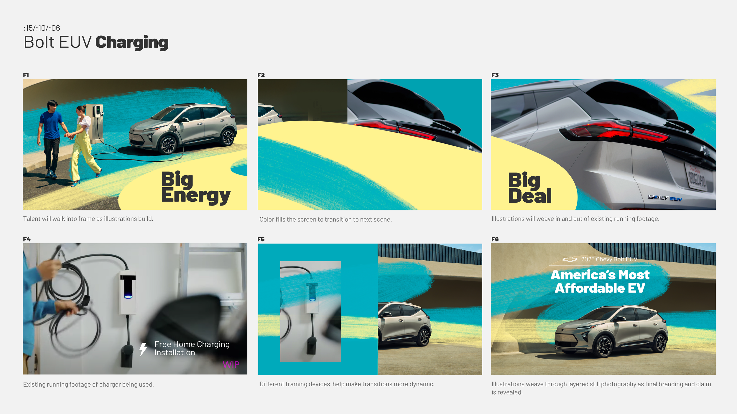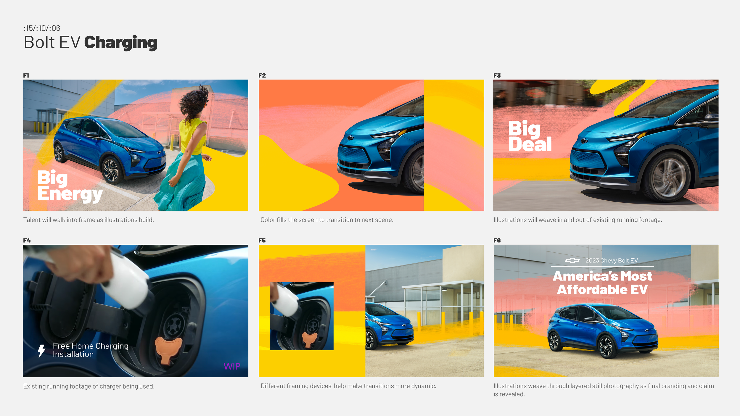 Art directed a series of short-form digital videos for the All-Electric 2023 Bolt EV/EUV. The challenge was to take existing video content and create a fresh, visually engaging campaign on social platforms.